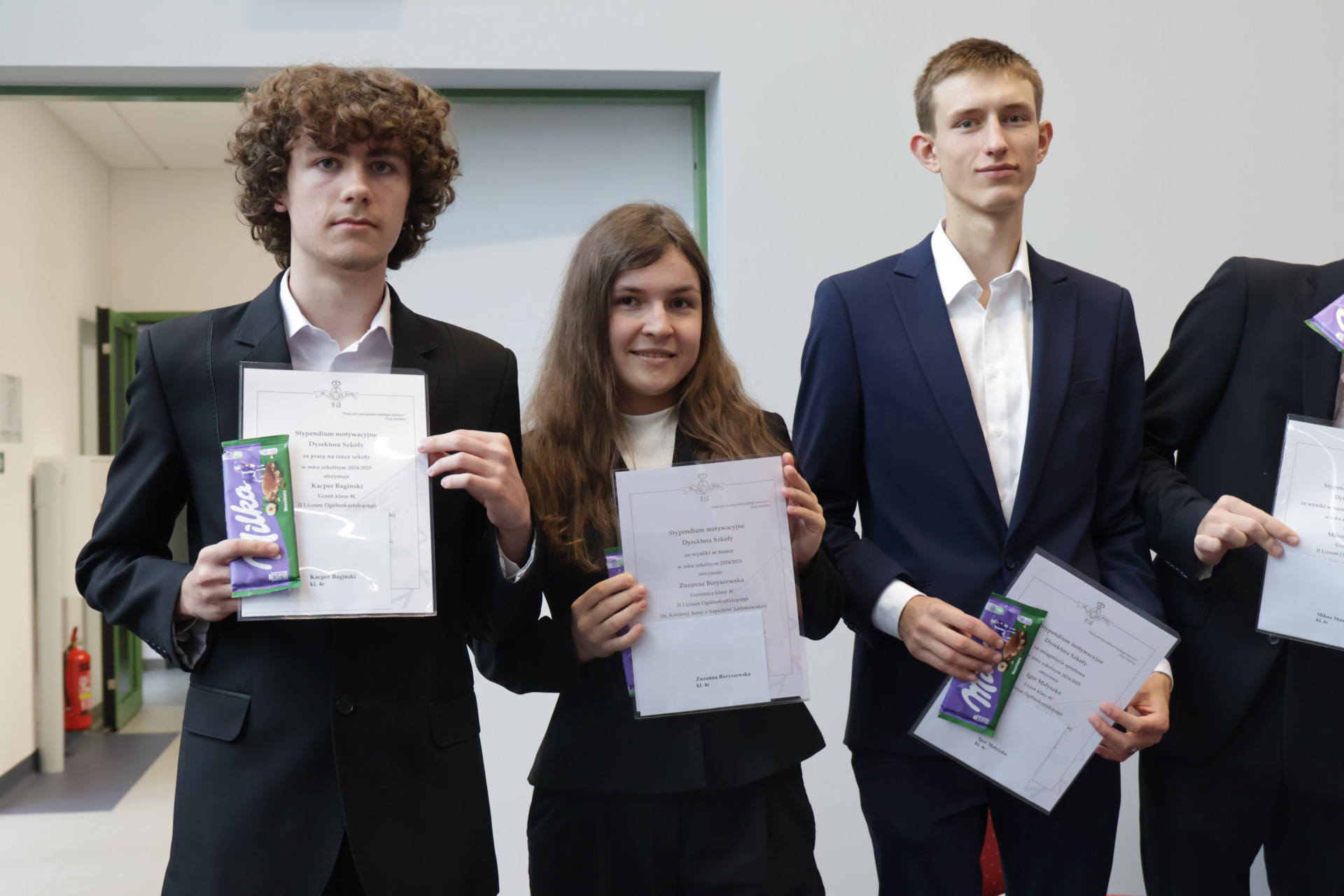 Obchodom Dnia Edukacji Narodowej towarzyszyło wręczenie uczniom stypendiów motywacyjnych Dyrektora Szkoły za wybitne wyniki w nauce oraz osiągnięcia sportowe w roku szkolnym 2024/2025.