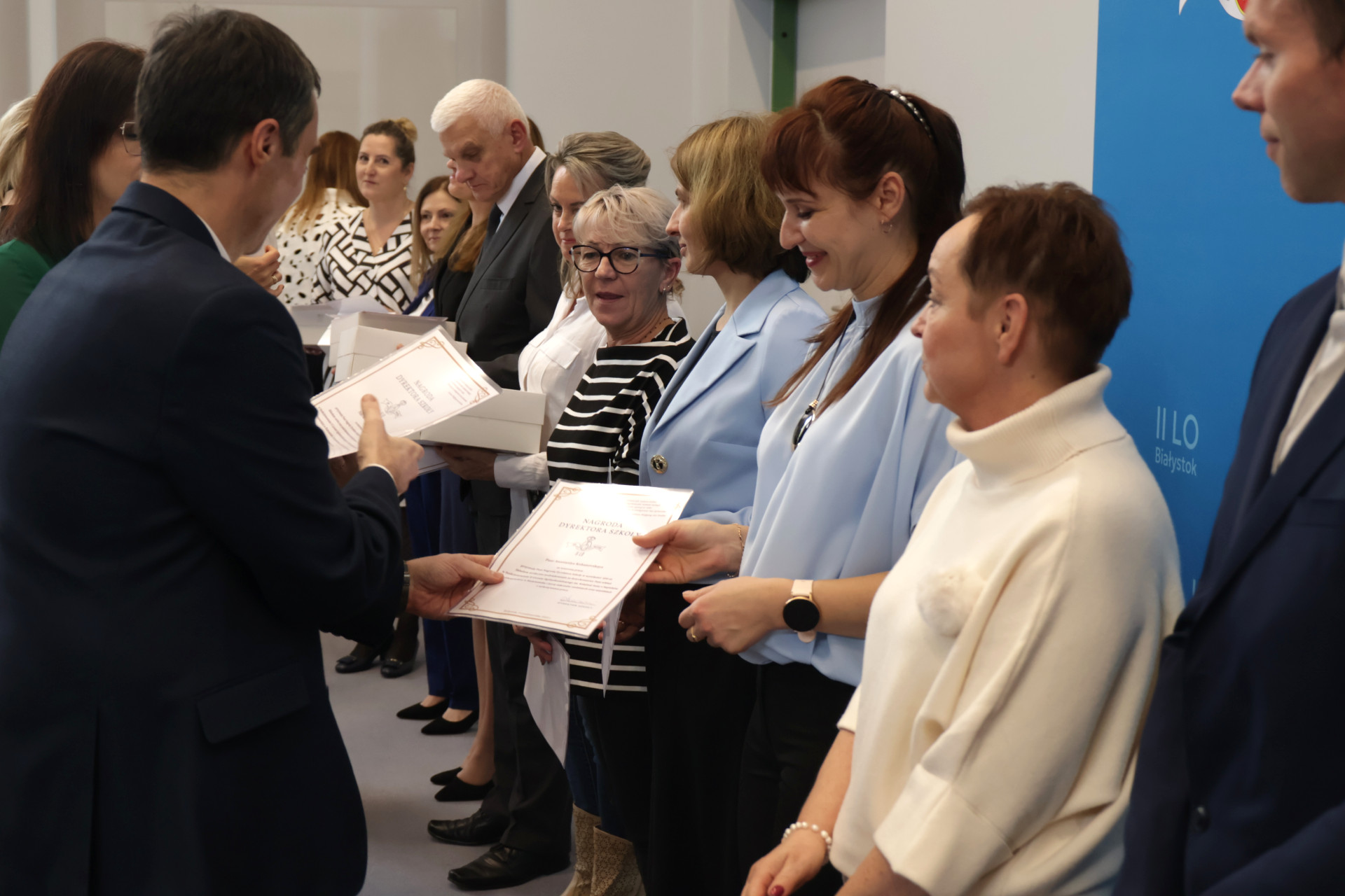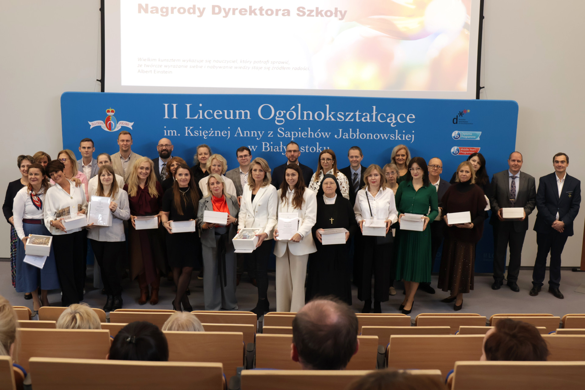 Nagrody Dyrektora Szkoły z okazji Dnia Edukacji Narodowej za wzorową pracę otrzymali pracownicy administracji i obsługi: Pani Aneta Borys, Pani Agnieszka Ciszyńska, Pani Anna Dziekońska, Pan Mieczysław Giełda, Pani Beata Hlebowicz, Pani Wanda Jakończuk, Pani Joanna Kasperek, Pan Seweryn Koda, Pani Anastasiya Kohanovskaya, Pani Iwona Kulmaczewska, Pan Rafał Łempicki, Pani Marzena Łotko, Pani Beata Malinowska, Pani Ewa Marciszewska, Pani Katarzyna Naumowicz, Pani Beata Piechowska, Pani Izabela Popławska, Pani Agnieszka Supranowicz, Pani Wioletta Trusiewicz, Pani Marianna Waszkiewicz, Pani Ewelina Wyszyńska.