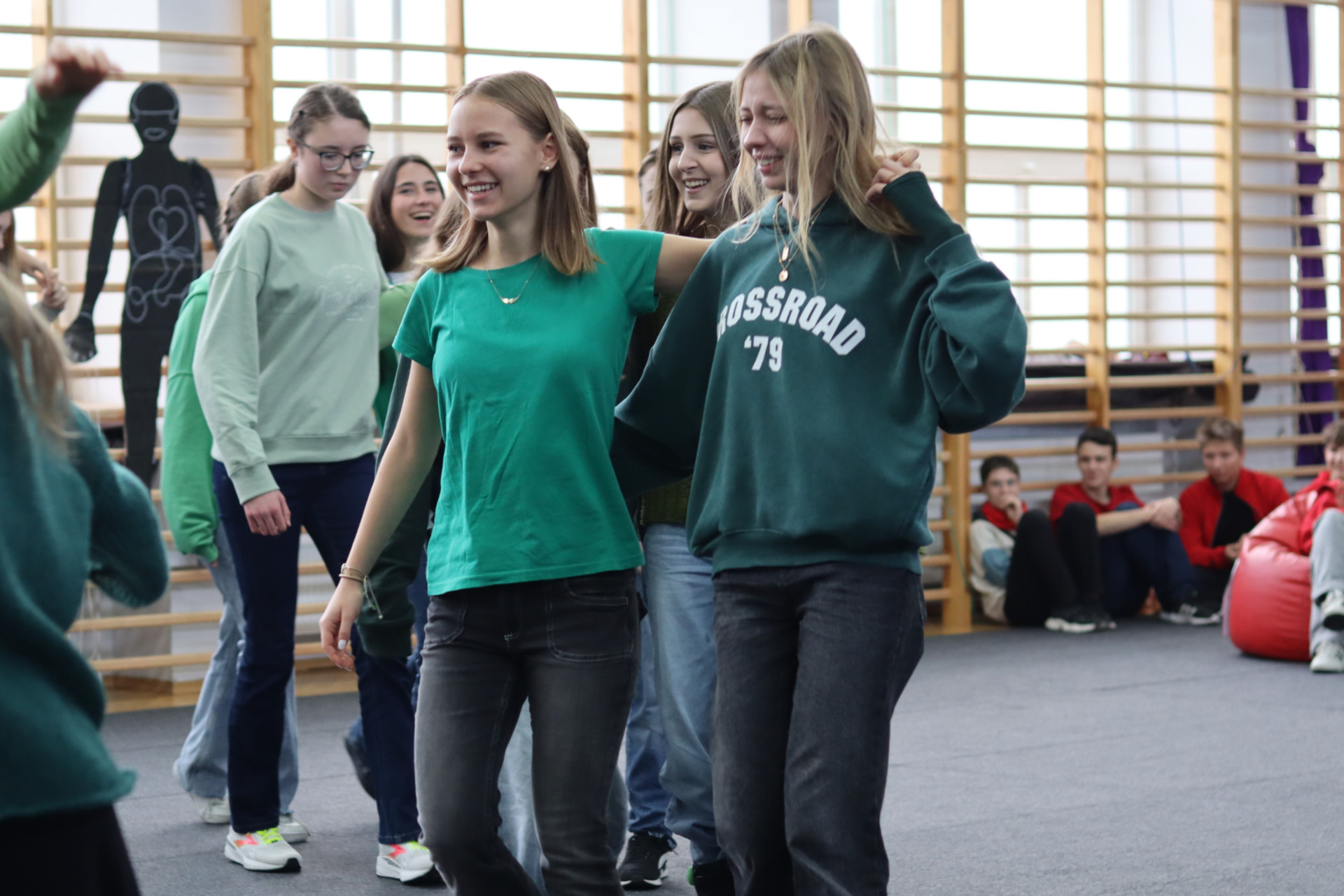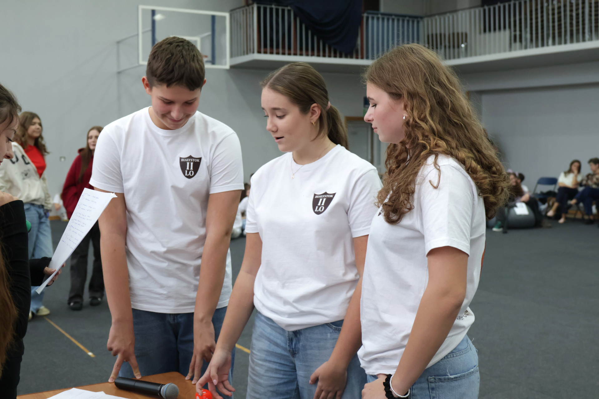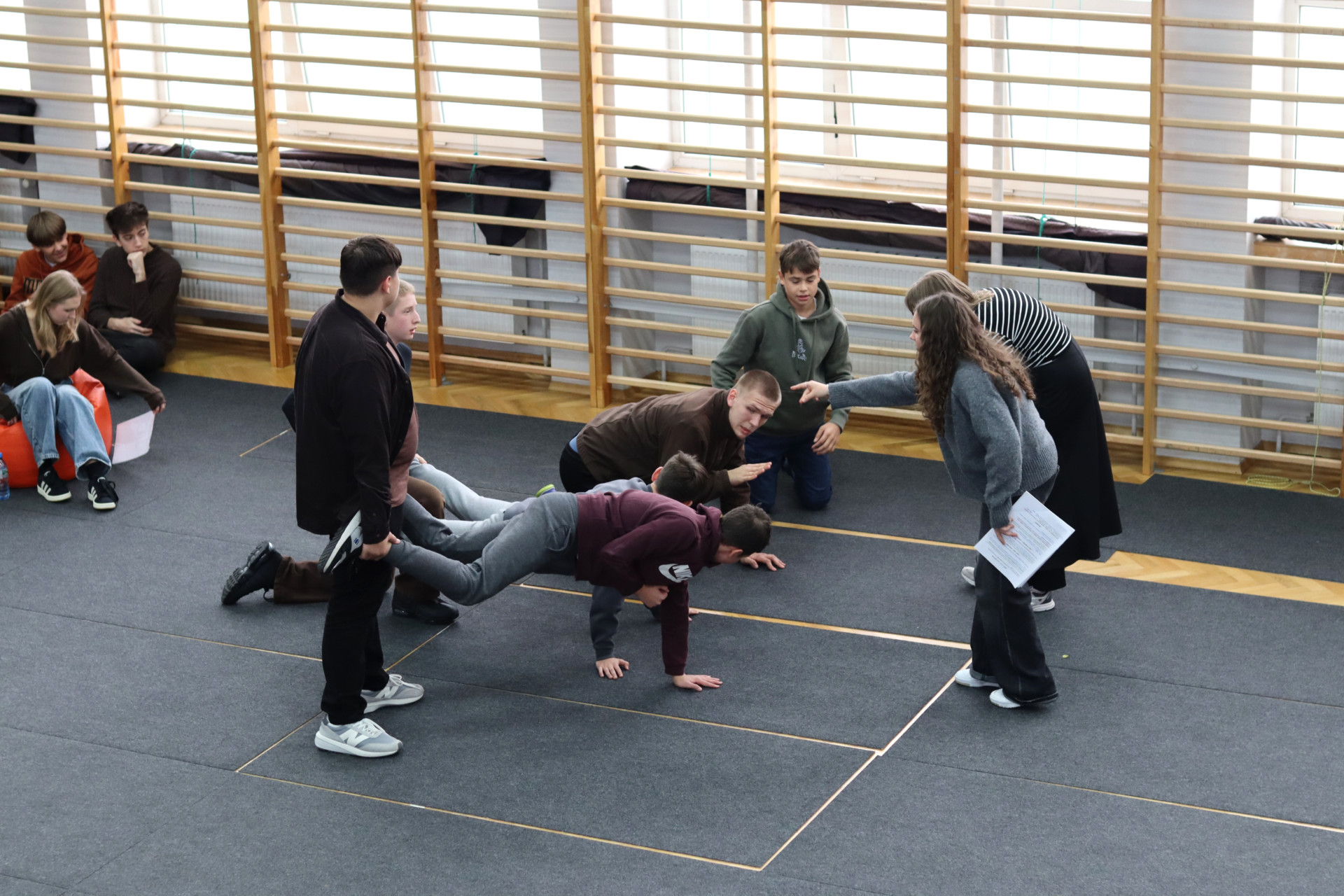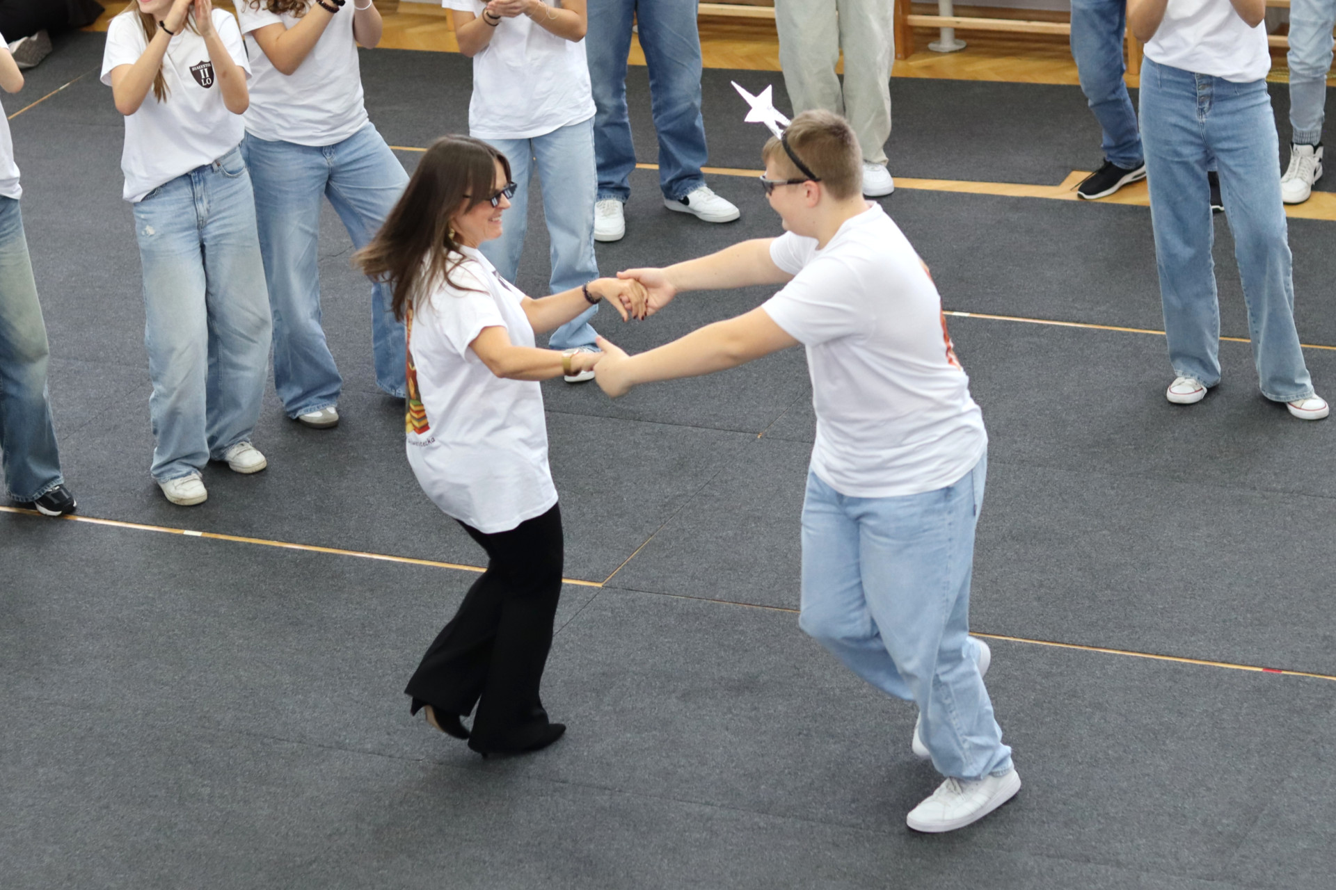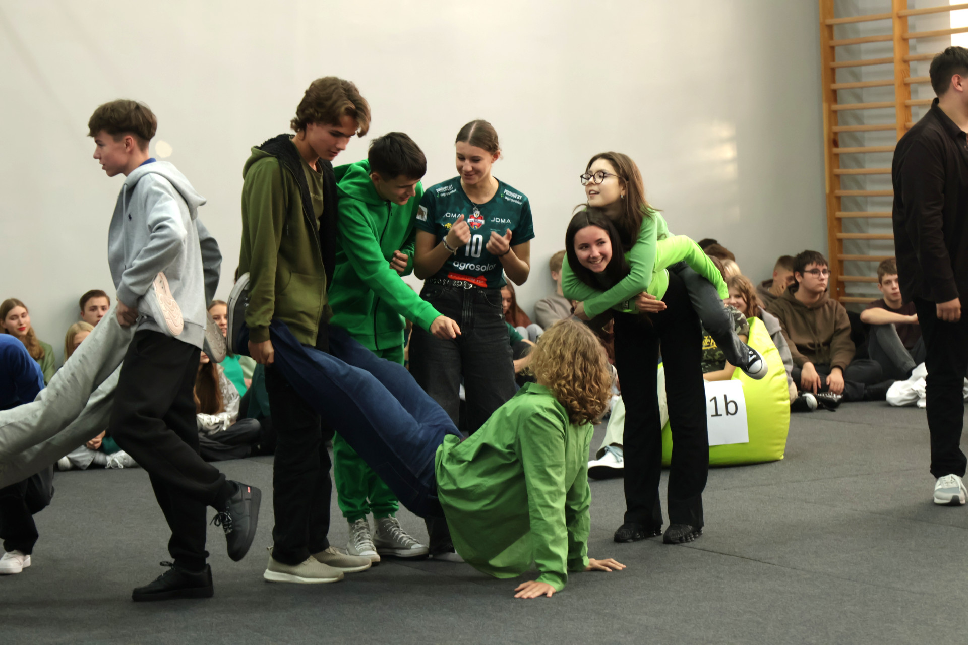 Impreza rozpoczęła się od prezentacji każdej z pierwszych klas – uczniowie wykazali się pomysłowością, kreatywnością i poczuciem humoru, przedstawiając swoje klasy w oryginalny sposób. Następnie przyszedł czas na różnorodne konkurencje: zwinnościowe, muzyczne oraz sprawdzające wiedzę ogólną. Wszystkie klasy dały z siebie wszystko, a atmosfera zdrowej rywalizacji udzieliła się zarówno uczestnikom, jak i wychowawcom. Na zakończenie wszyscy uczniowie wspólnie zatańczyli belgijkę, co było doskonałym zwieńczeniem całej imprezy i symbolem integracji między klasami.