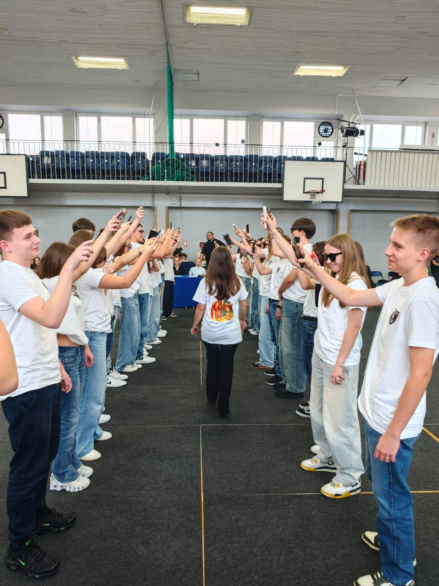 Dzisiaj w naszej szkole odbyły się tradycyjne otrzęsiny klas pierwszych, zorganizowane przez klasę 2B. Było to wydarzenie pełne śmiechu, zdrowej rywalizacji i świetnej zabawy!