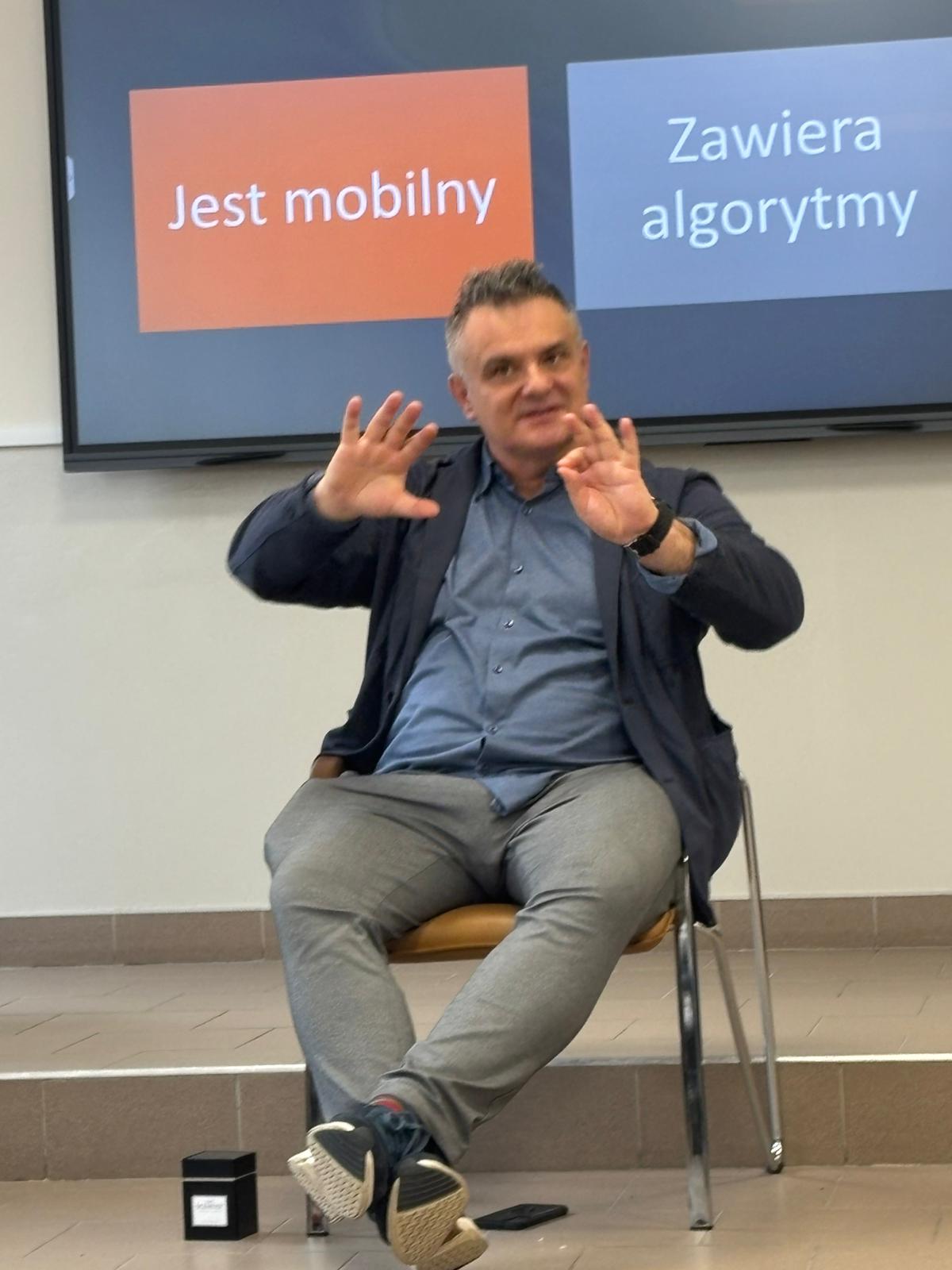 Szczególnym wydarzeniem tegorocznego kongresu był wykład prof. Jacka Pyżalskiego, cenionego pedagoga i badacza relacji w świecie nowych mediów. Profesor w swoim wystąpieniu poruszył niezwykle aktualny temat wpływu technologii i mediów cyfrowych na zdrowie psychiczne młodych ludzi. Podczas prelekcji wskazał zarówno pozytywne, jak i negatywne aspekty korzystania z nowych technologii. Podkreślił, że internet i media społecznościowe mogą być przestrzenią rozwoju, edukacji i kontaktu z innymi, jednak niosą ze sobą także ryzyko przeciążenia informacyjnego, uzależnienia od ekranów czy spadku samooceny. Profesor zwrócił uwagę na zjawisko porównywania się w sieci, które często prowadzi do frustracji i zaniżonego poczucia własnej wartości. Wspomniał również o potrzebie budowania tzw. cyfrowej higieny – świadomego, zrównoważonego korzystania z urządzeń elektronicznych. Zachęcał młodych ludzi, by regularnie „wylogowywali się” z sieci i wracali do świata realnych relacji, rozmów i doświadczeń. Jego wykład stał się inspirującym punktem wyjścia do wielu dyskusji wśród uczniów i nauczycieli o tym, jak mądrze korzystać z technologii, nie tracąc kontaktu z samym sobą.