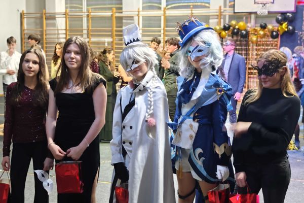 Uczniowie zachwycili pomysłowością swoich przebrań. Wśród masek i kostiumów pojawiły się zarówno klasyczne, eleganckie kreacje inspirowane balami weneckimi, jak i tradycyjne stroje karnawałowe, pełne koloru i artystycznego wyrazu. Każdy strój był świadectwem zaangażowania, wyobraźni oraz odwagi w wyrażaniu siebie. Najpiękniejsze stroje zostały nagrodzone specjalnym upominkiem od Pana Dyrektora. Nagrodzeni uczniowie ze szkoły podstawowej to: Maria Borisova 7a, Anastazja Leśniewska 7b, Hanna Rutkowska 7c, Helena Urban 8b, Alisa Reutskaya 8c. Spośród uczniów liceum zostali dostrzeżeni: Antonina Karpiuk 1b, Piotr Bielawski 1c, Wladyslaw Dronzek 1c, Mikhail Tsiarentsyev 1c, Michał Siedacz 1e.