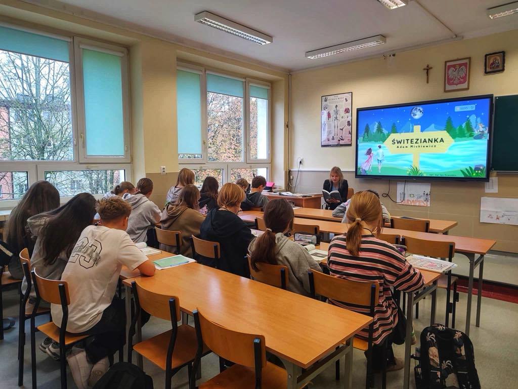 W ramach projektu NPRCZ 2025 - Mickiewiczowski maraton czytelniczy, którego celem jest motywowanie uczniów do twórczego odbioru tekstów narodowych i wzmacnianie szacunku dla dziedzictwa kulturowego Polski, w klasach siódmych zostało zorganizowane głośne czytanie dzieł Adama Mickiewicza. Ponadto, uczniowie zapoznali się z biografią wieszcza na podstawie fragmentów książki Jakuba Skworza pt. Adaś Mickiewicz. Łobuz i mistrz.