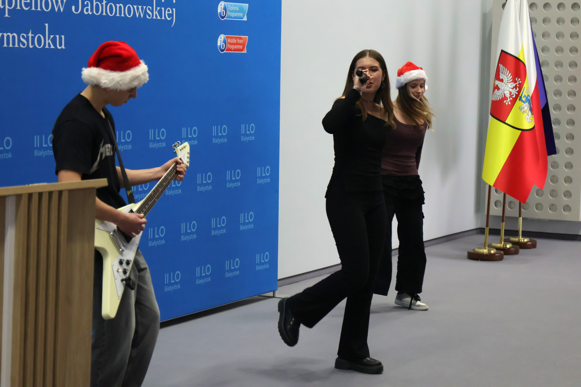 Koncert wspaniale poprowadzili Anna Ptaszyńska (3E) i Kamil Pękała (3F), dbając o swobodną atmosferę całego wydarzenia.