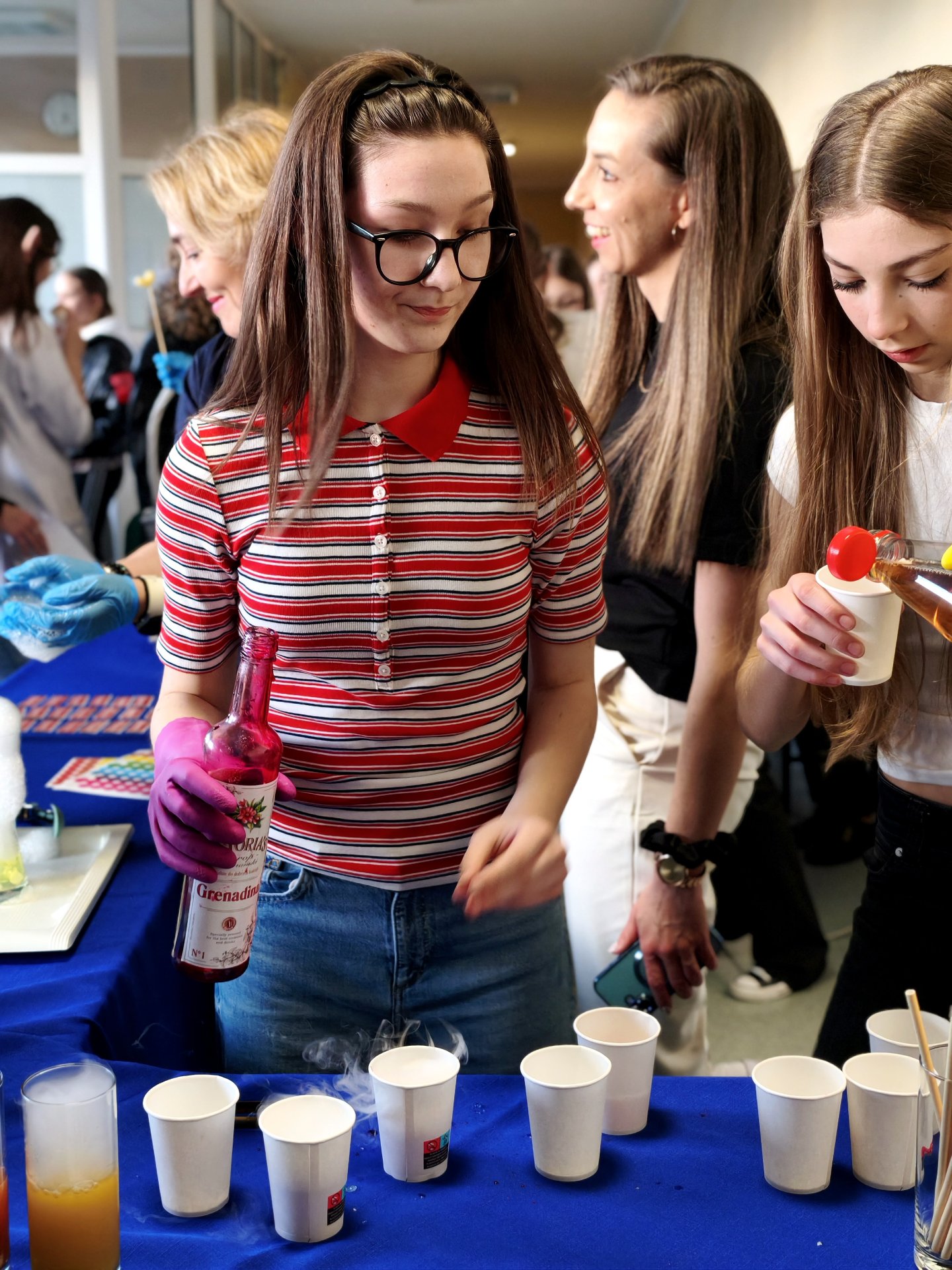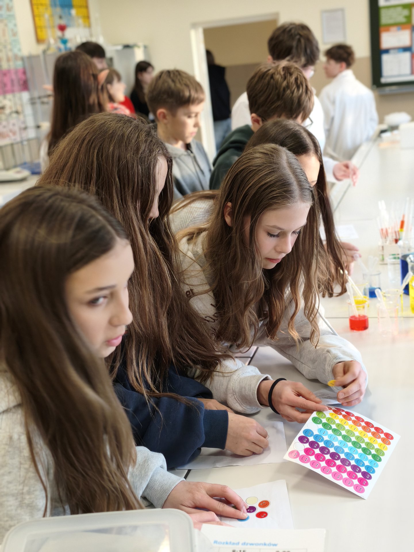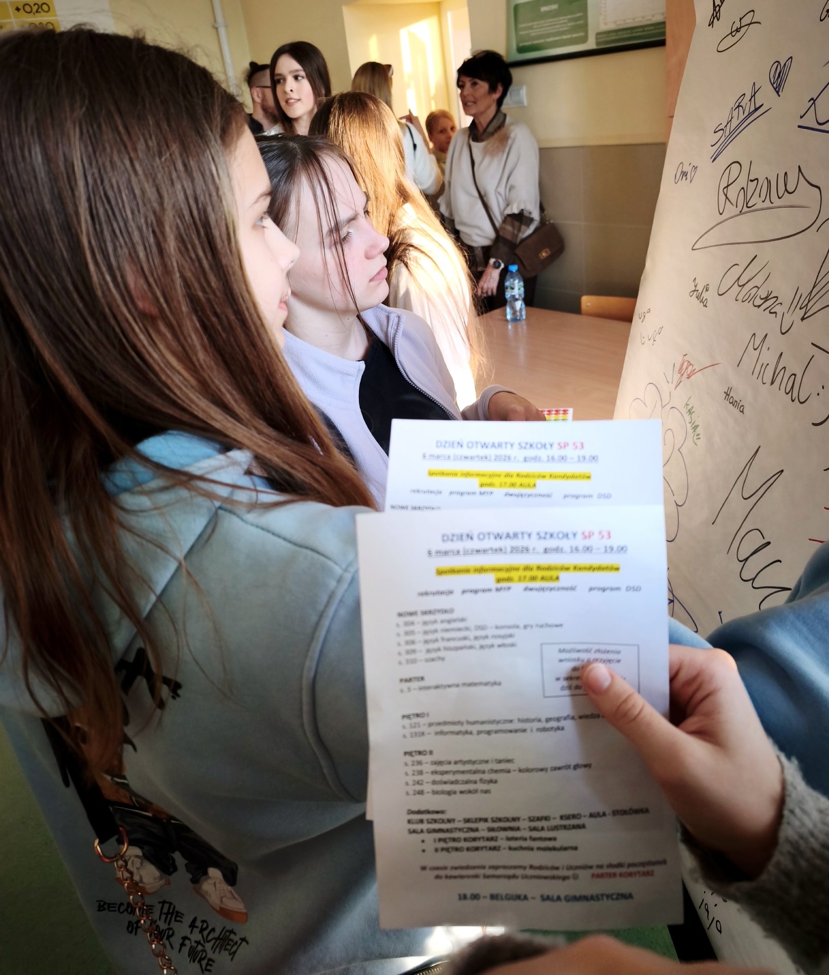 Goście podczas spaceru po szkole oglądali profesjonalnie wyposażone pracownie przedmiotowe, a w nich ciekawe eksperymenty czy prezentacje przygotowane przez uczniów klas VII i VIII. Co ważne, mogli dowiadywać się wszystkiego bezpośrednio od młodzieży, która wystąpiła w charakterze przewodników. Szóstoklasiści najczęściej pytali o atmosferę panującą w szkole, o relacje między uczniami i nauczycielami oraz o możliwości rozwijania własnych pasji. Po zwiedzeniu szkoły goście mogli wziąć udział w loterii fantowej, spróbować pysznych lodów molekularnych czy wypić herbatkę i zjeść coś słodkiego w kawiarence Samorządu Uczniowskiego.