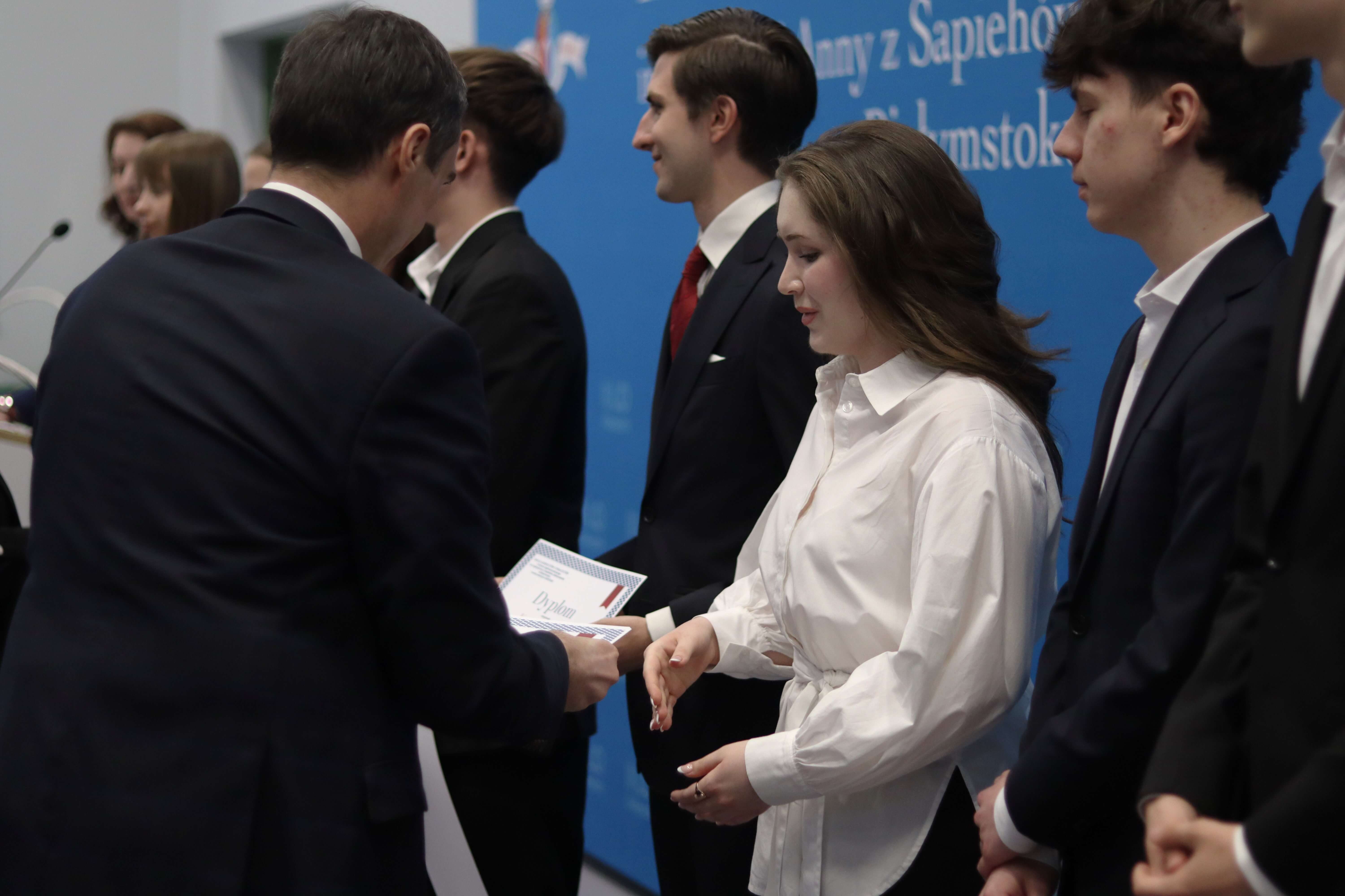 Część oficjalną wydarzenia rozpoczął występ uczennicy klasy 2d, Luizy Barszczewskiej, która wykonała utwór „Diamonds Are Forever”. Następnie głos zabrał Dyrektor szkoły, pan Dariusz Bossowski, gratulując laureatom i finalistom oraz podkreślając, że ich osiągnięcia są powodem do dumy dla całej społeczności szkolnej. W swoim przemówieniu życzył uczniom, aby obecne sukcesy stały się motywacją do dalszego rozwoju i spełniania kolejnych marzeń.