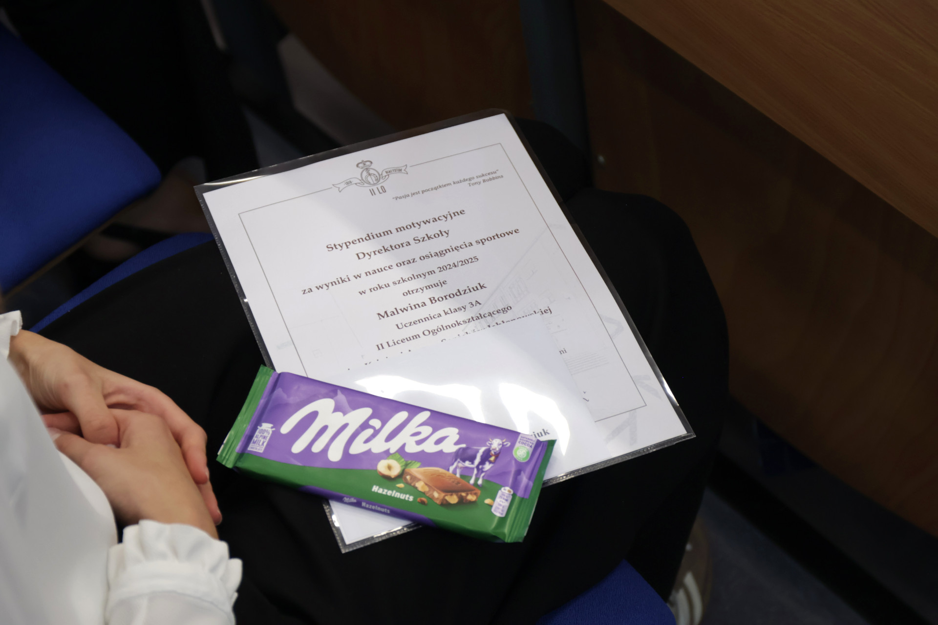 Obchodom Dnia Edukacji Narodowej towarzyszyło wręczenie uczniom stypendiów motywacyjnych Dyrektora Szkoły za wybitne wyniki w nauce oraz osiągnięcia sportowe w roku szkolnym 2024/2025.