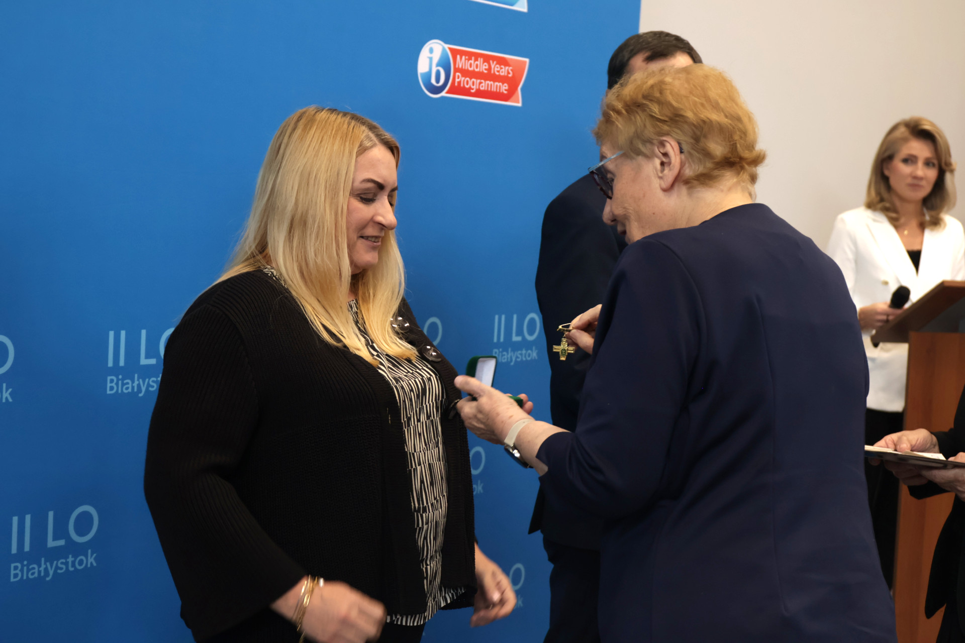 W uroczystości uczestniczyli przedstawiciele Zarządu Białostockiego Oddziału Związku Sybiraków na czele z Panią Prezes Jolantą Hryniewicką, z rąk której Pan Dyrektor Dariusz Bossowski oraz Pani Marta Tupalska odebrali Honorową Odznakę Sybiraka.