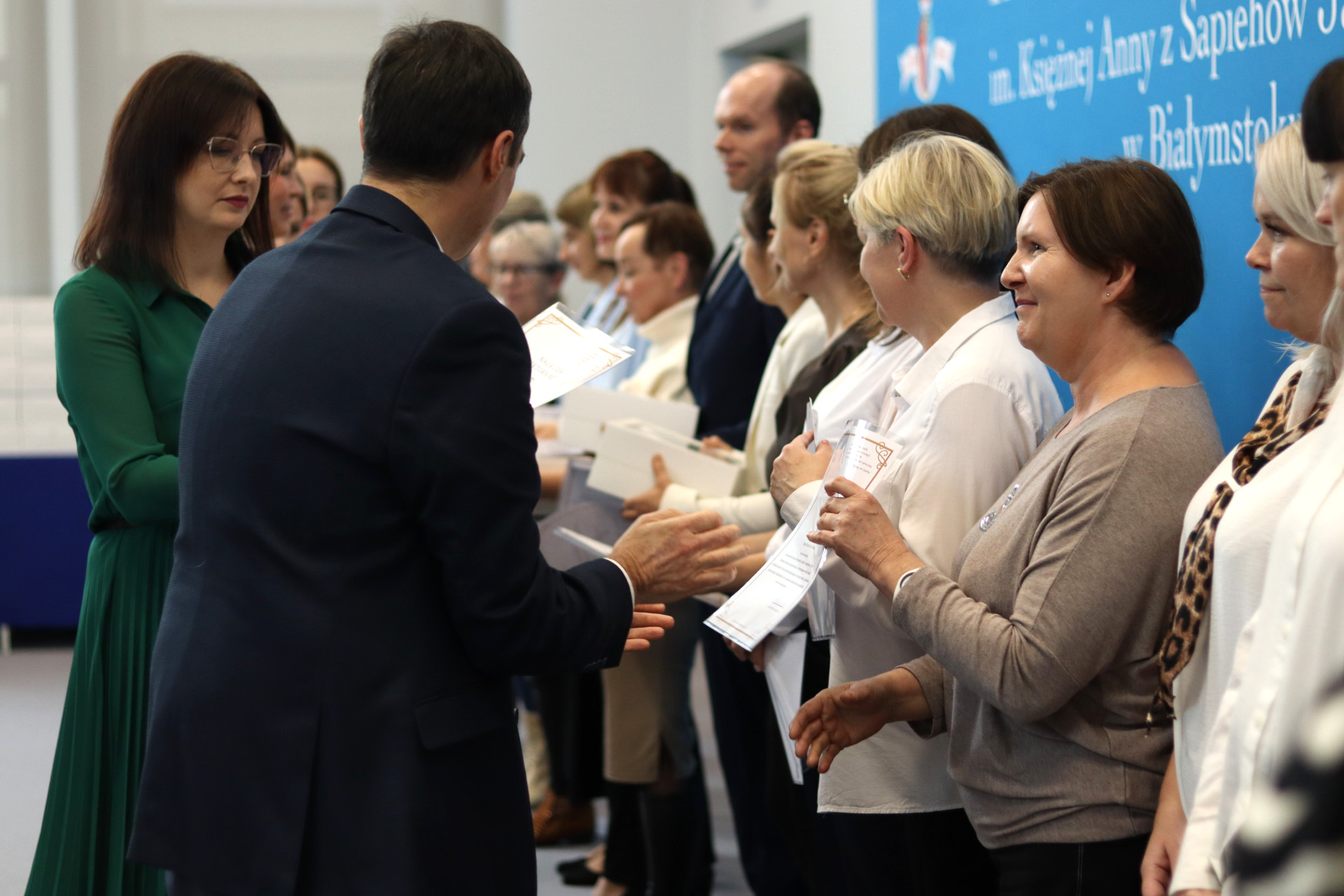 Nagrody Dyrektora Szkoły z okazji Dnia Edukacji Narodowej za wzorową pracę otrzymali pracownicy administracji i obsługi: Pani Aneta Borys, Pani Agnieszka Ciszyńska, Pani Anna Dziekońska, Pan Mieczysław Giełda, Pani Beata Hlebowicz, Pani Wanda Jakończuk, Pani Joanna Kasperek, Pan Seweryn Koda, Pani Anastasiya Kohanovskaya, Pani Iwona Kulmaczewska, Pan Rafał Łempicki, Pani Marzena Łotko, Pani Beata Malinowska, Pani Ewa Marciszewska, Pani Katarzyna Naumowicz, Pani Beata Piechowska, Pani Izabela Popławska, Pani Agnieszka Supranowicz, Pani Wioletta Trusiewicz, Pani Marianna Waszkiewicz, Pani Ewelina Wyszyńska.
