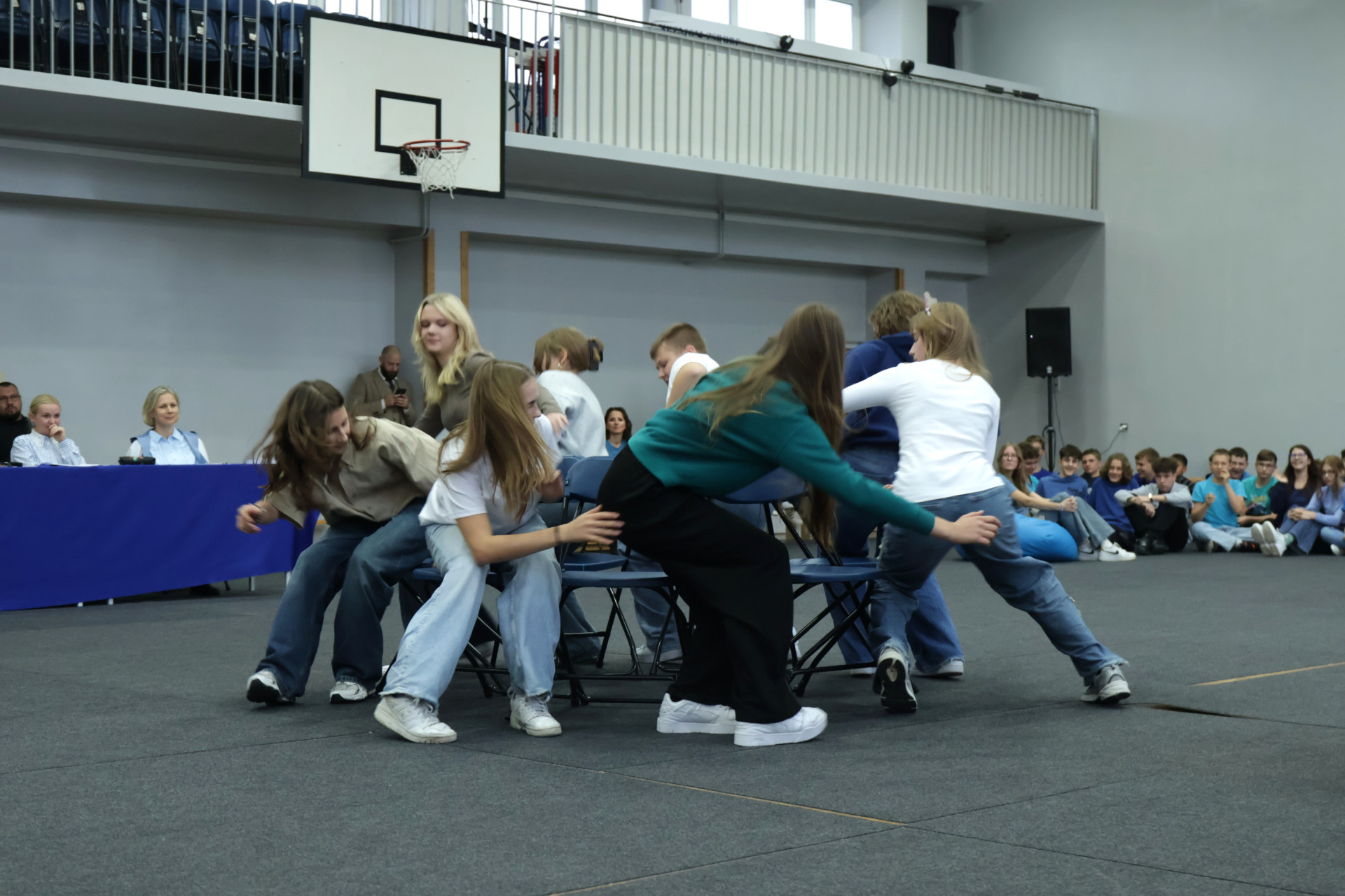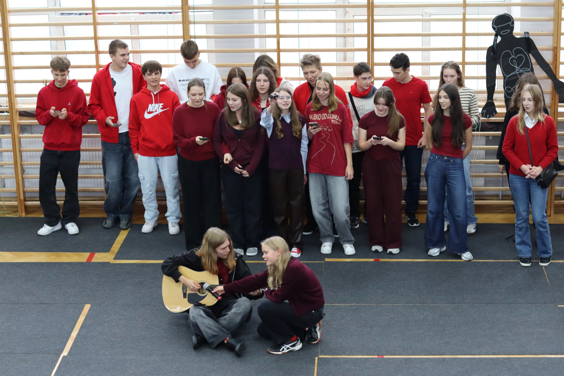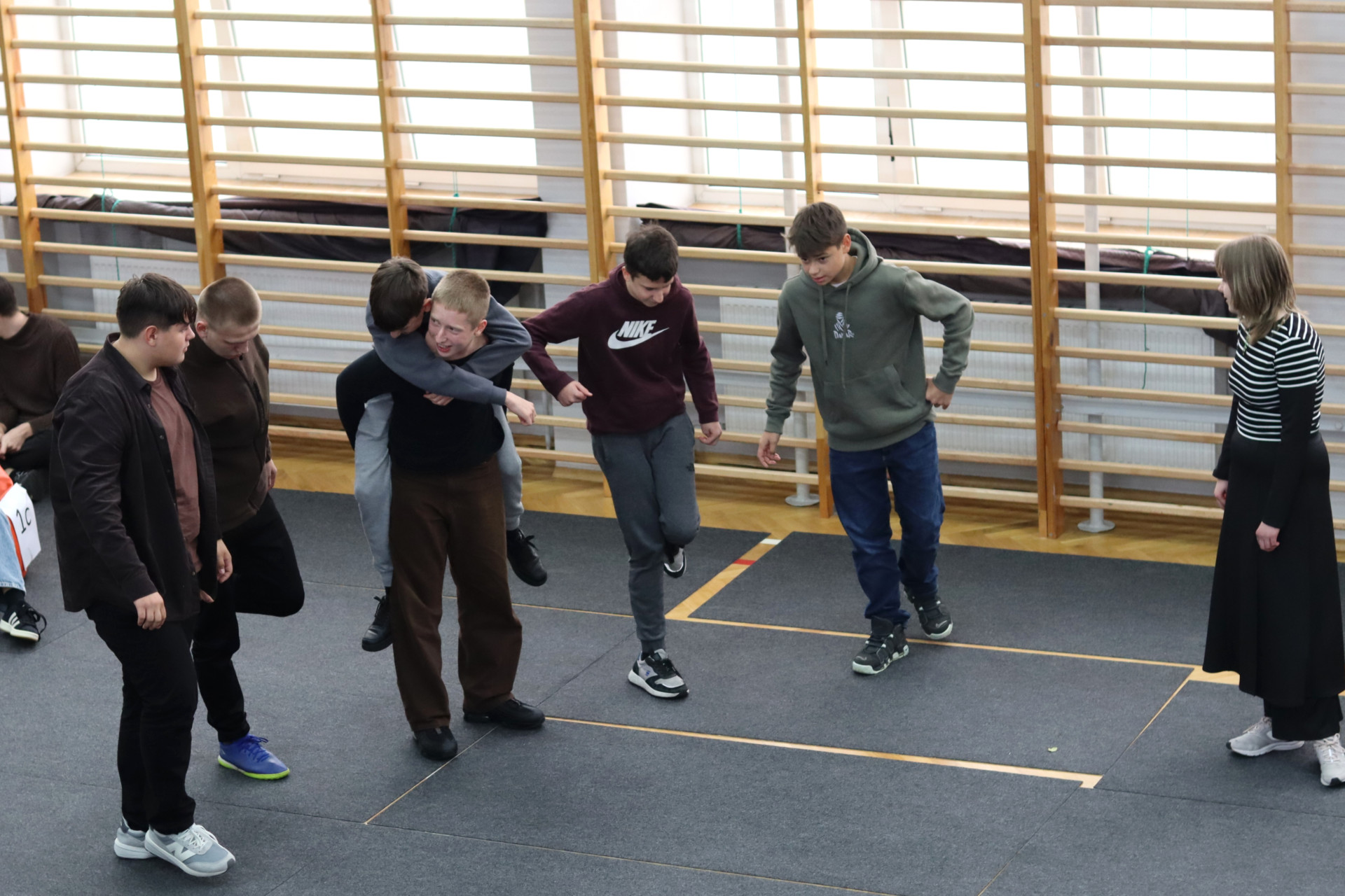 Impreza rozpoczęła się od prezentacji każdej z pierwszych klas – uczniowie wykazali się pomysłowością, kreatywnością i poczuciem humoru, przedstawiając swoje klasy w oryginalny sposób. Następnie przyszedł czas na różnorodne konkurencje: zwinnościowe, muzyczne oraz sprawdzające wiedzę ogólną. Wszystkie klasy dały z siebie wszystko, a atmosfera zdrowej rywalizacji udzieliła się zarówno uczestnikom, jak i wychowawcom. Na zakończenie wszyscy uczniowie wspólnie zatańczyli belgijkę, co było doskonałym zwieńczeniem całej imprezy i symbolem integracji między klasami.