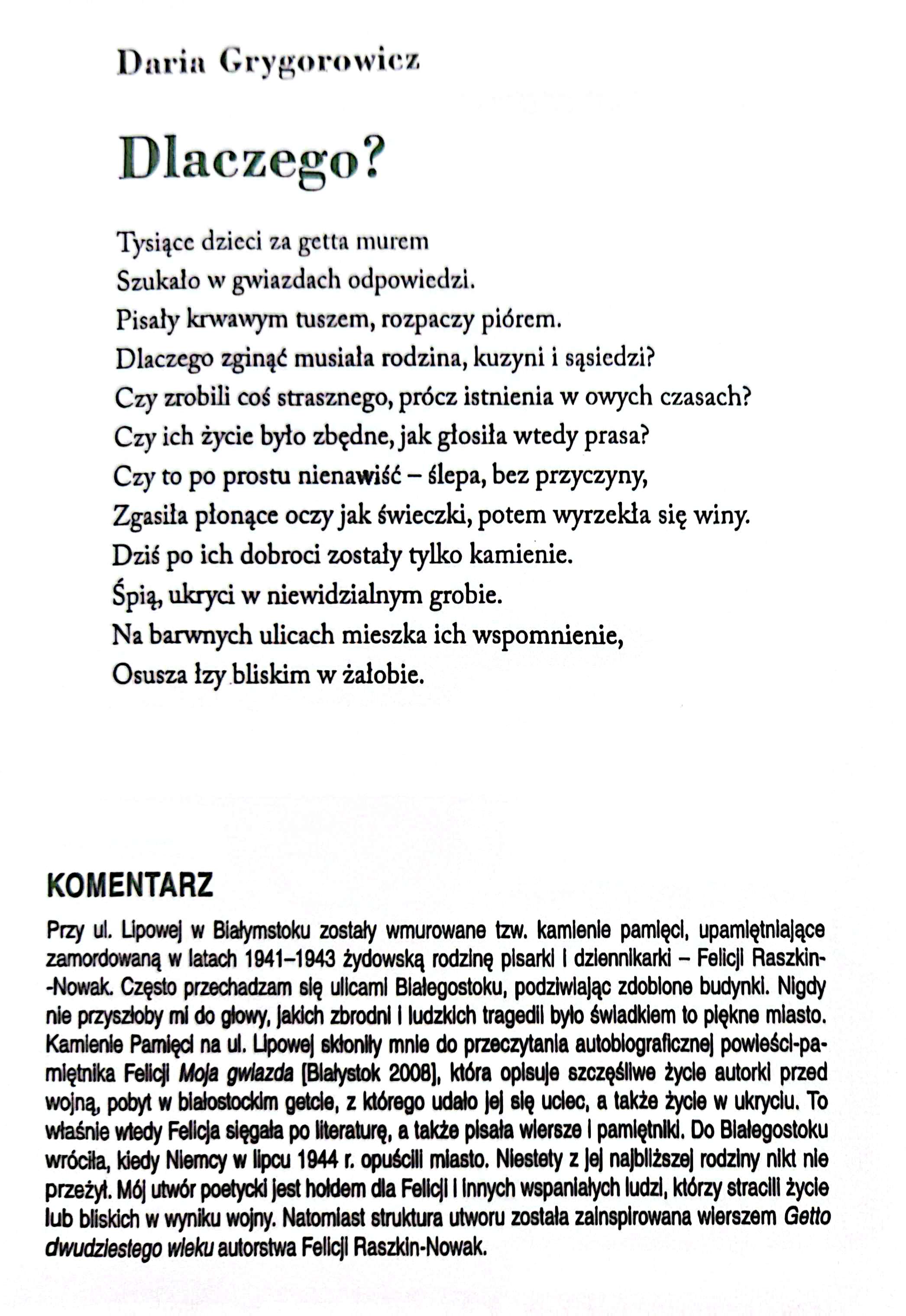 - Darię Grygorowicz (klasa 1f), za utwór „Dlaczego”;