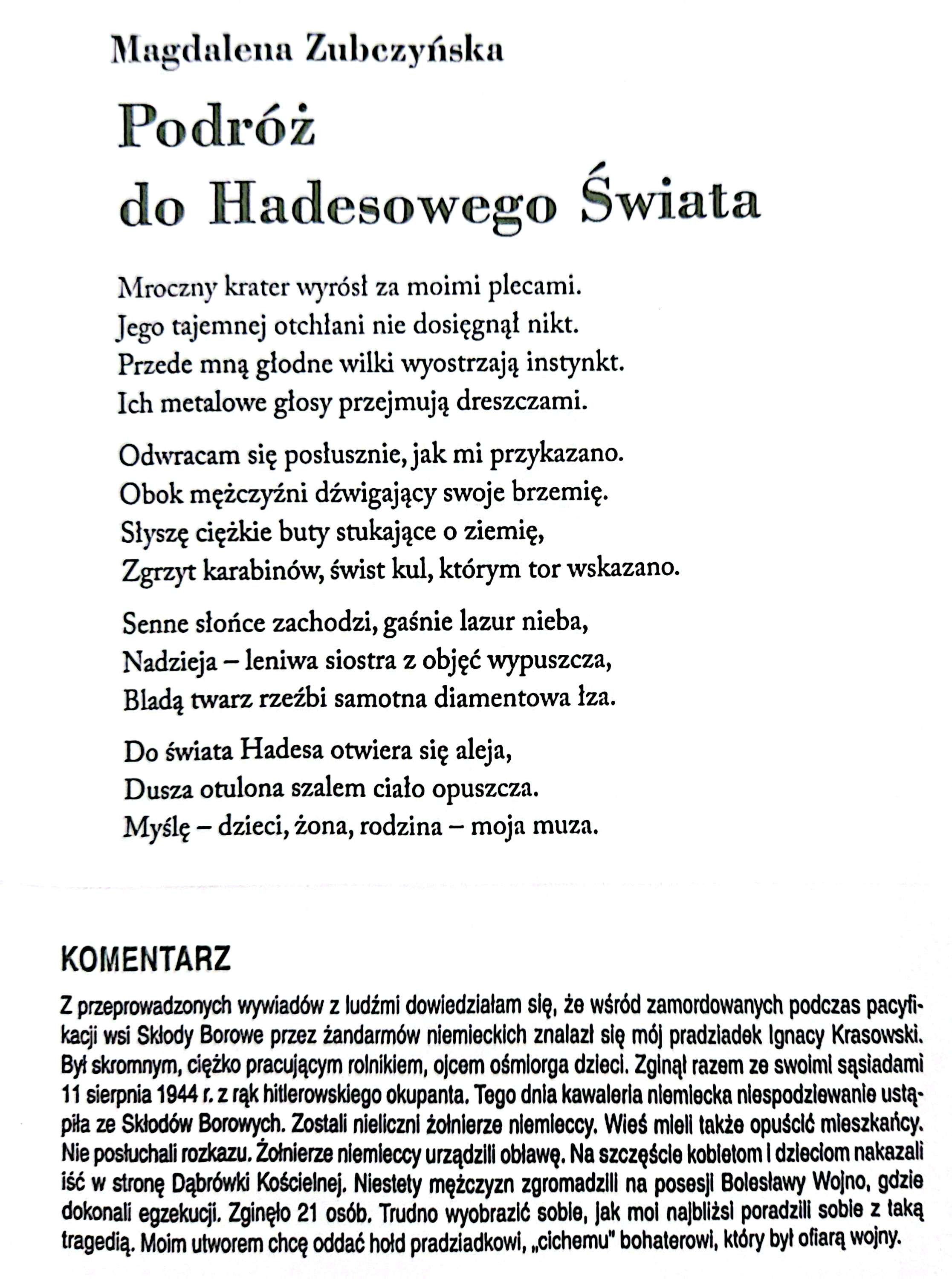 - Magdalenę Zubczyńską (klasa 1f), za utwory: „W niebezpieczeństwie” oraz „Podróż do Hadesowego Świata”.