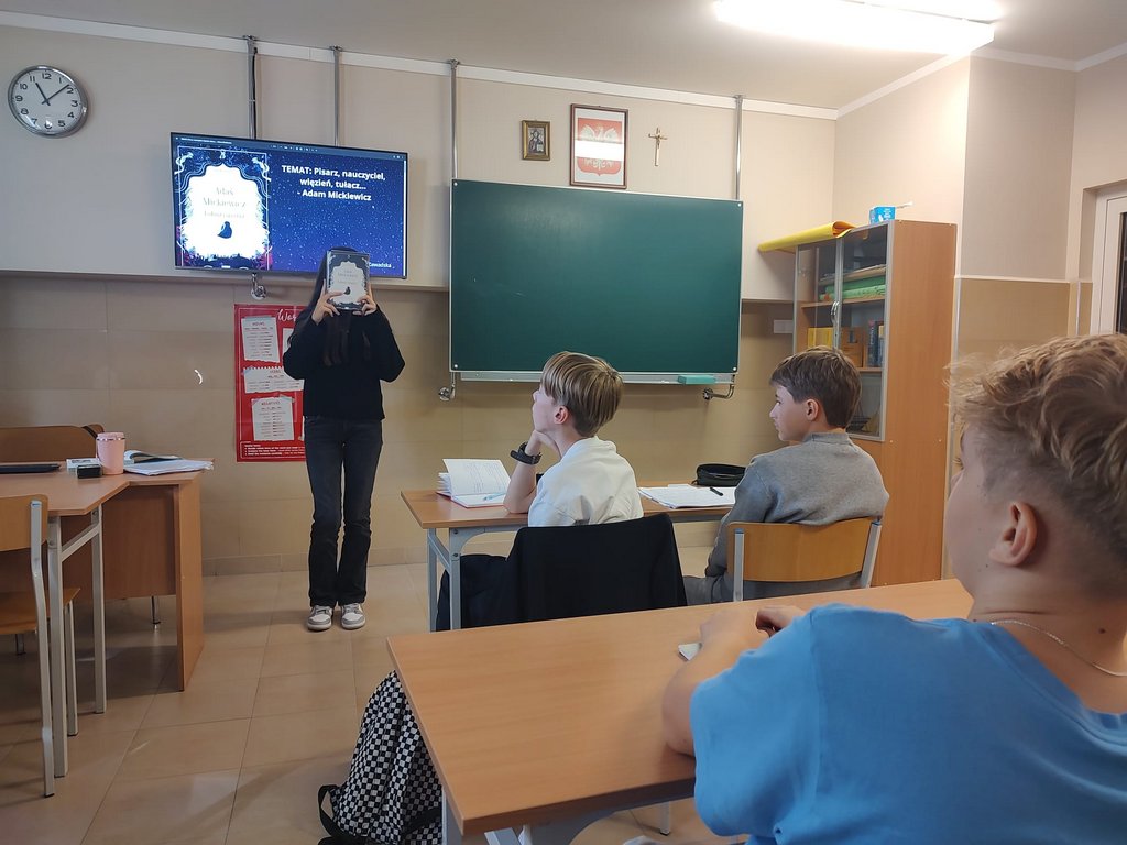 W ramach projektu NPRCZ 2025 - Mickiewiczowski maraton czytelniczy, którego celem jest motywowanie uczniów do twórczego odbioru tekstów narodowych i wzmacnianie szacunku dla dziedzictwa kulturowego Polski, w klasach siódmych zostało zorganizowane głośne czytanie dzieł Adama Mickiewicza. Ponadto, uczniowie zapoznali się z biografią wieszcza na podstawie fragmentów książki Jakuba Skworza pt. Adaś Mickiewicz. Łobuz i mistrz.