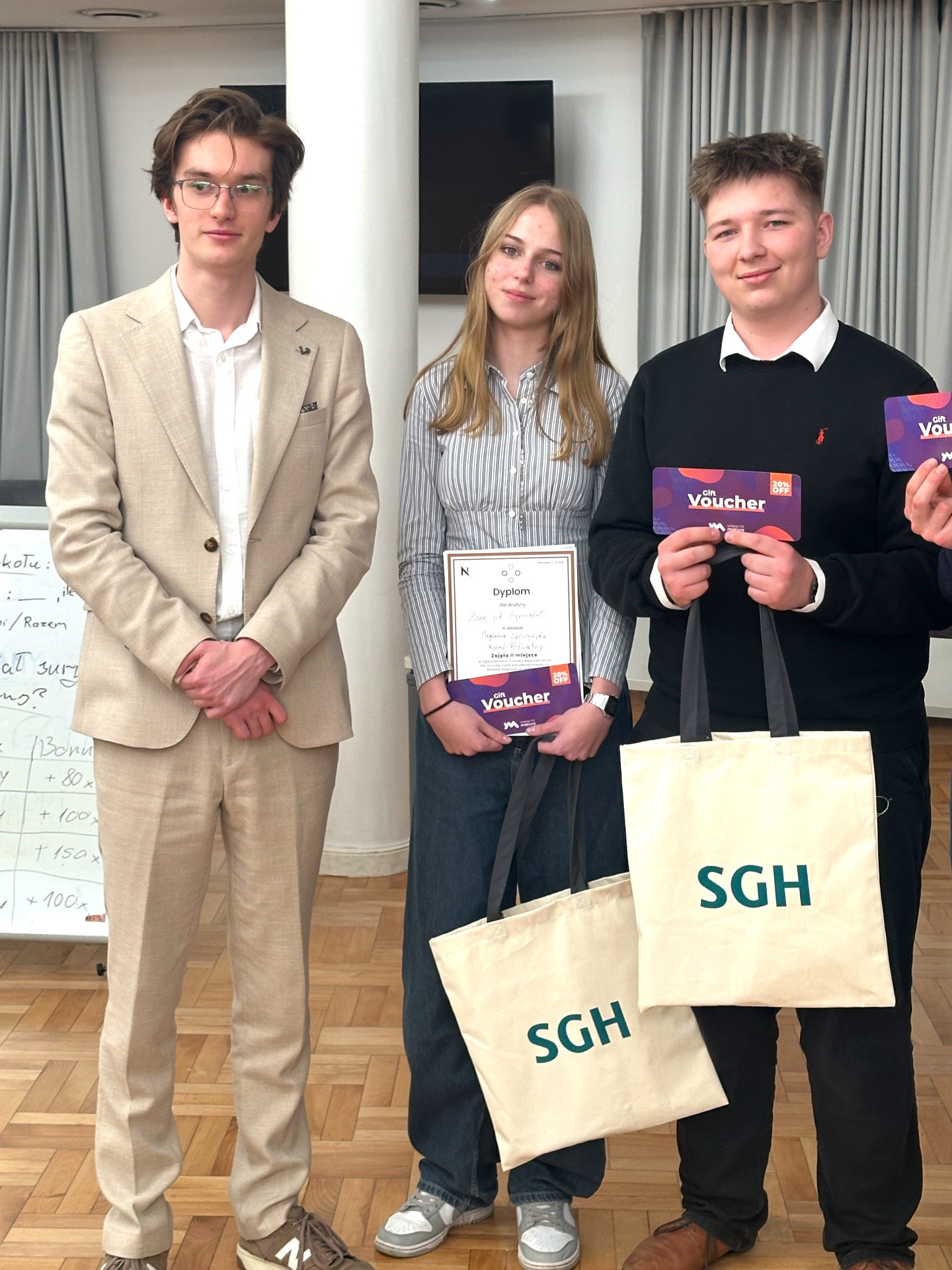 Wśród 12 najlepszych drużyn w Polsce, które przeszły wcześniej dwa etapy eliminacji, znalazły się dwa zespoły z II LO w Białymstoku - Magdalena Zubczyńska i Kamil Poświątny z kl. I F oraz Aleksandra Żukowska z kl. II A i Michał Zajkowski z kl. II B. Po kilkugodzinnych zmaganiach wymagających licytacji, budowania strategii i zawierania sojuszy, okazało się że Magda i Kamil uplasowali się na 2 pozycji.