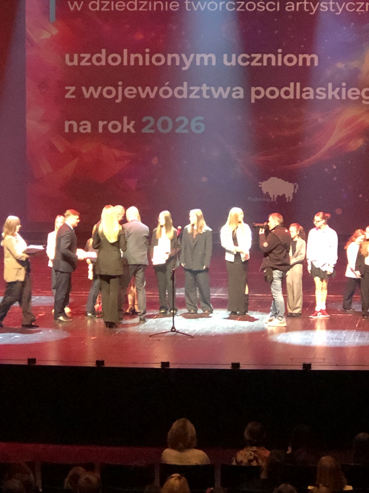 30 marca w Operze i Filharmonii Podlaskiej w Białymstoku odbyła się uroczysta gala wręczenia stypendiów w dziedzinie twórczości artystycznej uzdolnionym uczniom z województwa podlaskiego na rok 2006. Wśród stypendystów znależli się nasi uczniowie: Mateusz Waszkiewicz (2C), Luiza Barszczewska (2D), Alicja Bielecka (3B), Malwina Płońska (3C), Anna Jurczuk (3D), Aleksandra Putko (4D), Natalia Joka (4G), Barbara Antoniuk (8A).