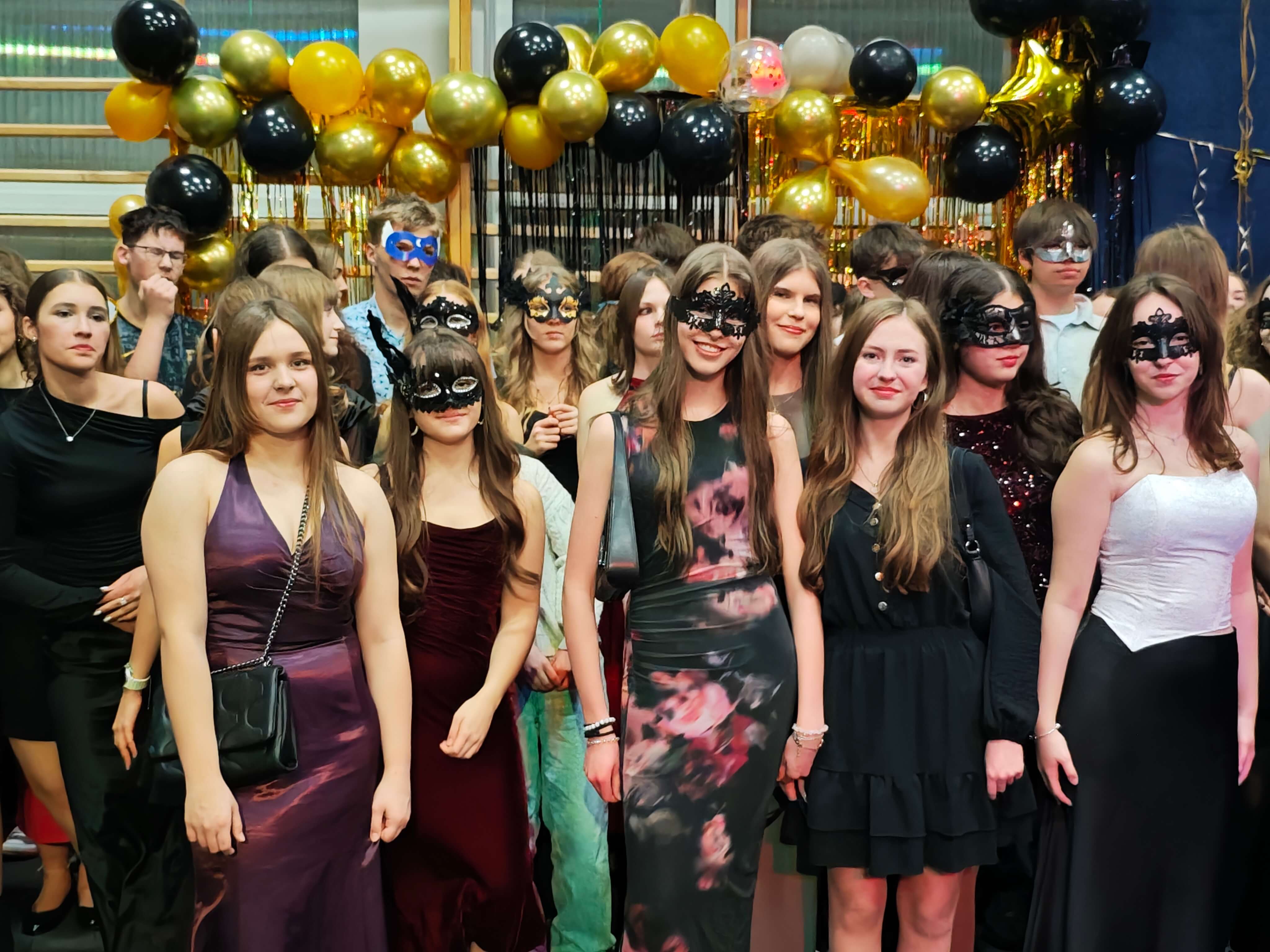 Wieczór upłynął w atmosferze znakomitej zabawy i wzajemnej życzliwości. Taneczne rytmy porwały uczestników na parkiet, a uśmiechy nie znikały z twarzy aż do ostatnich chwil wydarzenia. Bal maskowy stał się nie tylko okazją do wspólnej celebracji karnawału, lecz także pięknym dowodem na to, że nasza szkoła to miejsce, w którym tradycja harmonijnie łączy się z młodzieńczą energią. To wydarzenie na długo pozostanie w pamięci całej społeczności szkolnej jako symbol elegancji, wspólnoty i twórczej pasji.