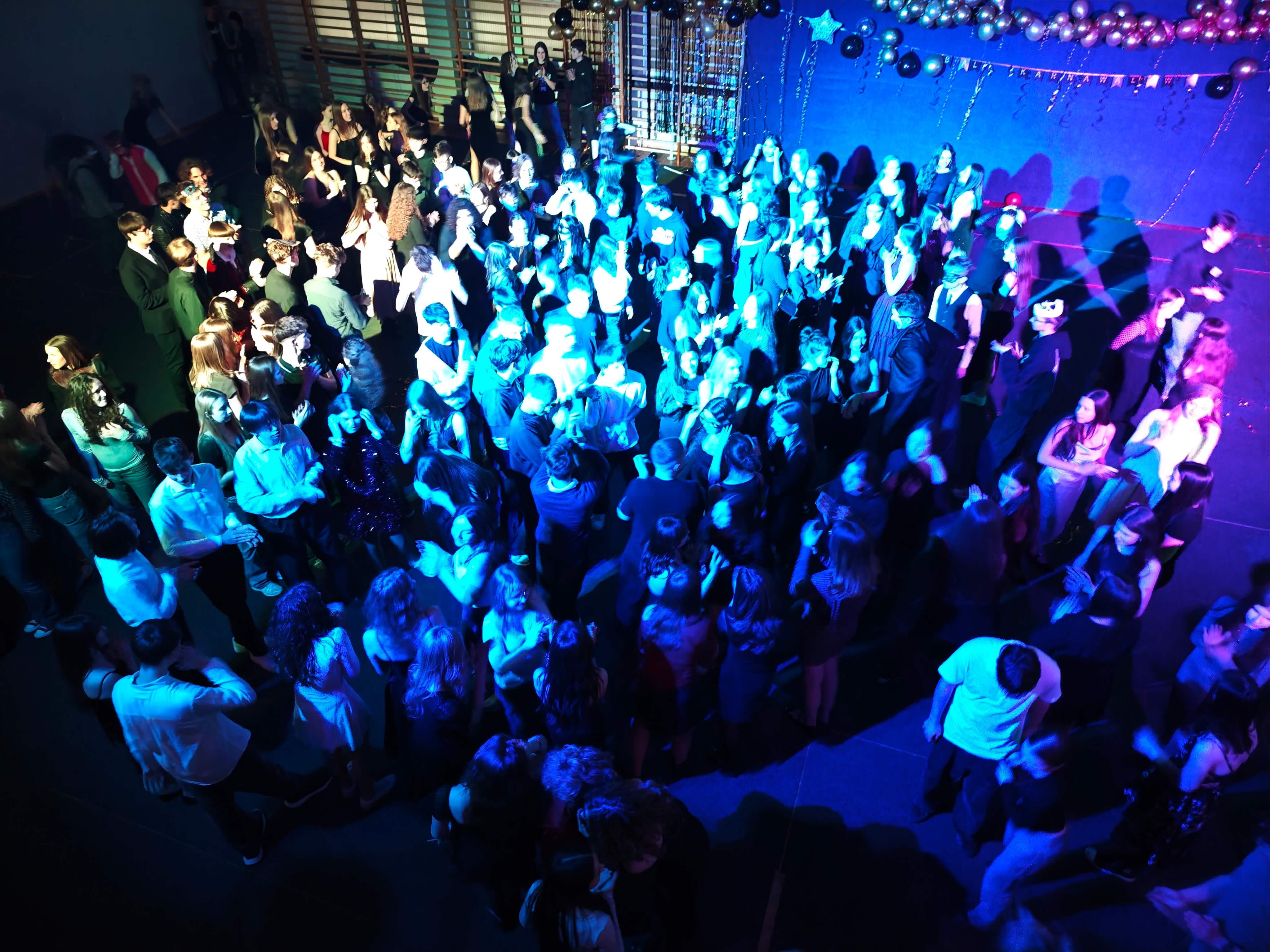 Już od progu uwagę przyciągała udekorowana sala gimnastyczna, która na tę okazję zamieniła się w pełną blasku przestrzeń balową. Subtelne iluminacje świetlne, złote dekoracje oraz nastrojową oprawę muzyczną zapewnił zespół RZWJR. Zagrali m. in. Belgijkę, do której zatańczyli wszyscy uczniowie. Stworzyło to klimat rodem z najwspanialszych karnawałowych tradycji!